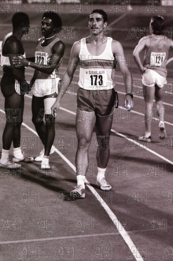 Image ID: 201802272124_00007 athletephotobase 8 years ago SA Championships Bloemfontein April 1988, Johan Rossouw, Tsakile Nzimande