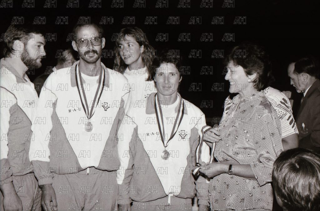 Image ID: 201807210813_00001 dewaldsteyn 8 years ago Table Top Stellenbosch 18 March 1991,Eugene Nysschen,Stanley Valentine, Desire du Plessis,Maryna van Niekerk